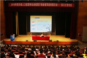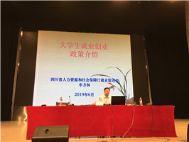 6月13日上午10:00,由四川省人力资源和社会保障厅、四川省教育厅主办开展2019年“创业指导进校园”活动在我校艺术传媒大楼多功能厅顺利举行。四川省人力资源和社会保障厅就业促进处就业促进处一级调研员牟方林、四级调研员崔慧英、专家志愿团创业指导专家袁建军以及各二级学院创新创业负责人、创新创业导师代表等出席了本次活动,我校200余名有创业意向的学生参加了此次活动。