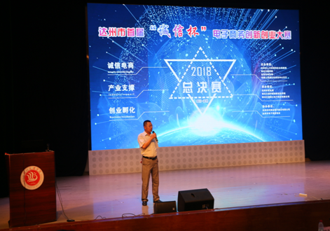 达州市就业局局长杨翔致辞。达州市委、市政府和各级有关部门高度重视电子商务创新创业,出台了一系列扶持政策,还将着力营造和提供更加优质的环境、更加完善的配套、更加高效的服务,推动电子商务向更广、更深、更高水平发展。本次大赛具有三个鲜明特点:一是突出专业性,这是我市第一次针对电子商务专业举办的一次专业化创业大赛,专业性较强、技术含量高;二是扩大辐射面,大赛吸引了包括达州、广元、广安、巴中等地的12个项目参赛,辐射了川东北片区,具有良好的带动性;三是构建新优势,这次大赛不仅是一次电商产品和技术的集中展示,更是一次电商理念和互联网智慧的碰撞分享,相信必将为达州的电商产业发展注入新理念、新灵感、新动能,促进电商发展的巨大潜力释放,有效推进电子商务与传统农业、制造业、服务业等产业深度融合,构筑起达州经济社会加快发展的新优势。