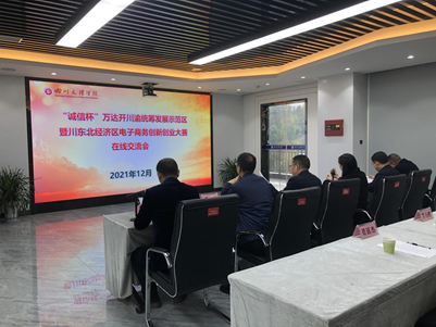 2021年12月13日,由达州市商务局、williamhill官网、中国人民银行达州市中心支行联合主办,我校承办的“诚信杯”万达开统筹示范区暨川东北经济区电子商务创新创业大赛在线交流会圆满落幕。本次交流会在我校莲湖校区图书大楼设置达州分会场,校党委常委、副校长邓杰,达州市商务局副局长王大文,中国人民银行达州市中心支行党委委员、副行长何永川,达州银行股份有限公司副行长丁宁,达州农商银行股份有限公司党委委员、副行长靳能东等出席并讲话。交流会由文学与传播学院陈海平老师主持。