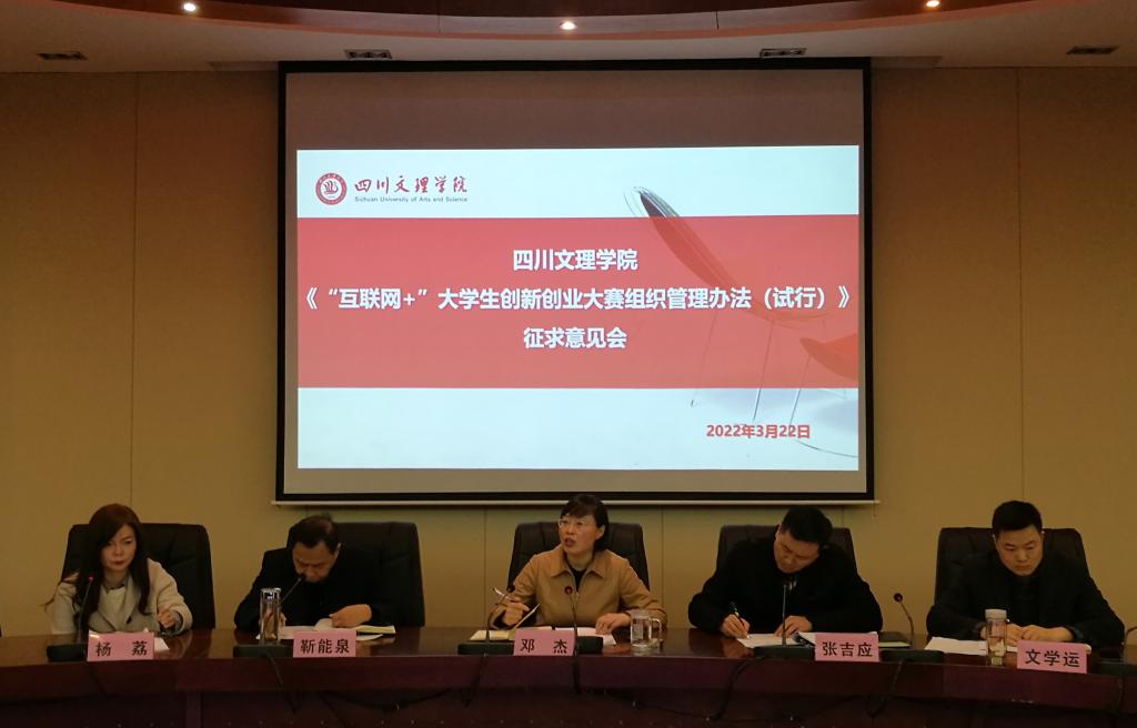 3月22日,学校在莲湖校区弘德楼二楼会议室召开《williamhill官网“互联网+”大学生创新创业大赛组织管理办法(试行)》征求意见会。党委常委、副校长邓杰出席并主持会议。