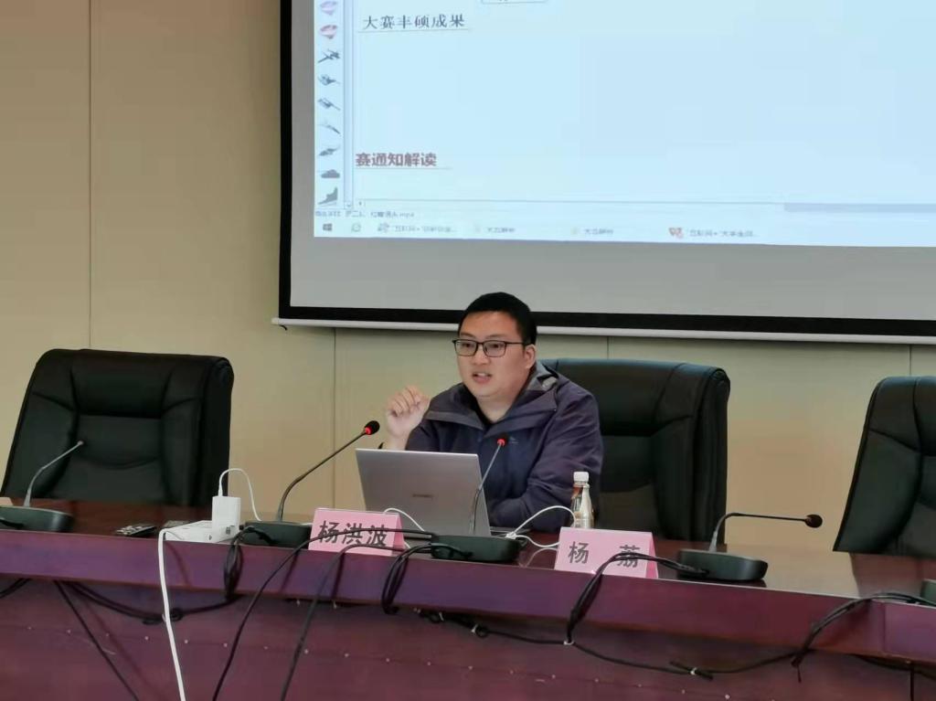 杨洪波从大赛文件解读,大赛对国家、学校、师生的重要性,赛事评审规则,大赛项目选育、培育思路等方面为我校师生做了详细的解读和指导。