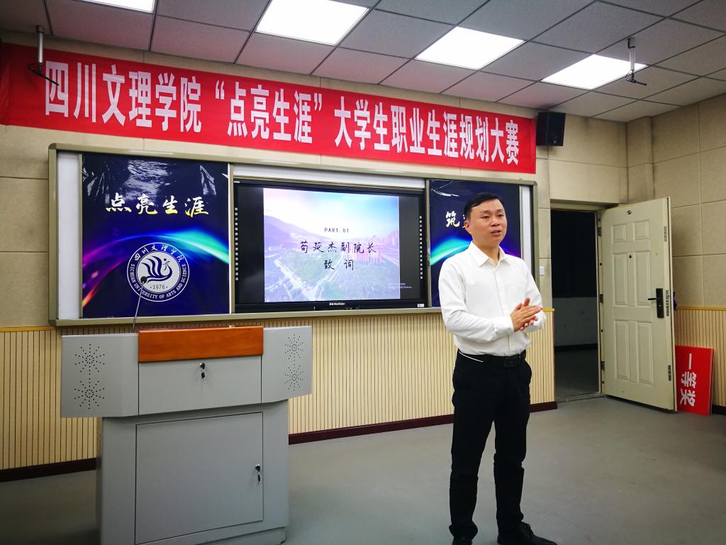 2022年4月11日19:00——21:00,williamhill官网首届“点亮生涯”大学生职业生涯规划大赛在图书大楼A601举行,william英国中文、大学生创新创业俱乐部承办。william英国中文副院长苟延杰致辞。
