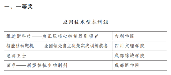四川省中华职业教育创新创业大赛分中职组、高职组和应用技术型本科组,参赛项目涵盖信息技术、制造业、现代农业、文化创意、社会服务等多个领域,涉及节能环保产业、新一代信息技术、高端服务业、数字创意产业、新材料等战略性新兴产业方向。本次大赛全省157所学校选送的443个项目参加省级复赛,60所学校的106个项目进入决赛,最终产生一等奖12个、二等奖28个、三等奖66个、优秀奖159个、优秀指导教师奖22个,一等奖前4名代表四川省参加大赛国赛。