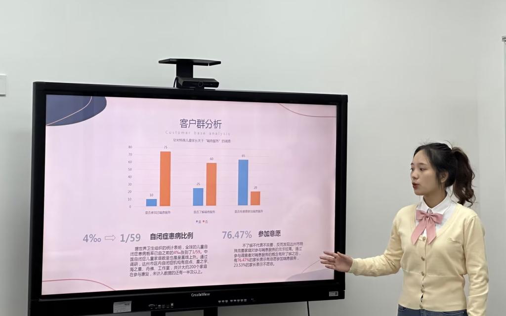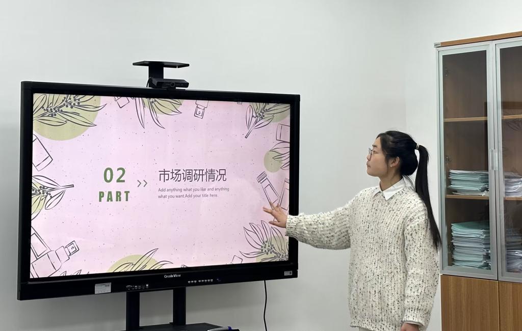 12个项目团队均制作PPT,或利用短视频、产品实物依次进行现场路演,并重点介绍了项目基本情况、产品/服务、市场分析及定位、商业模式、营销策略、财务分析、风险控制、团队介绍等;评委针对每个项目的问题进行提问,团队成员及时答辩。