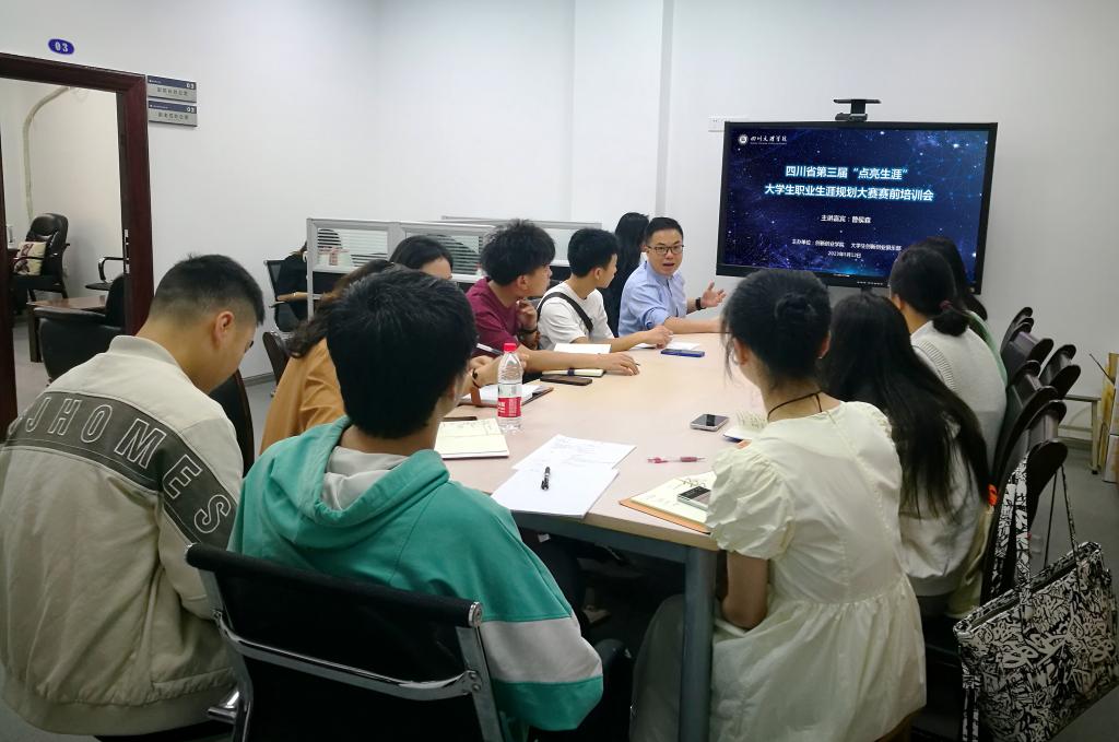 5月12日上午,为推进学校大学生职业生涯规划与就业指导工作,迎接四川省第三届“点亮生涯”大学生职业生涯规划大赛,由william英国中文主办的省赛赛前培训会,在图书大楼A506会议室举行,本届校赛决赛获奖的11位学生及指导教师参加培训。四川师范大学体育学院党委副书记曾侯森应邀出席并为师生授课,活动由徐佩主持。