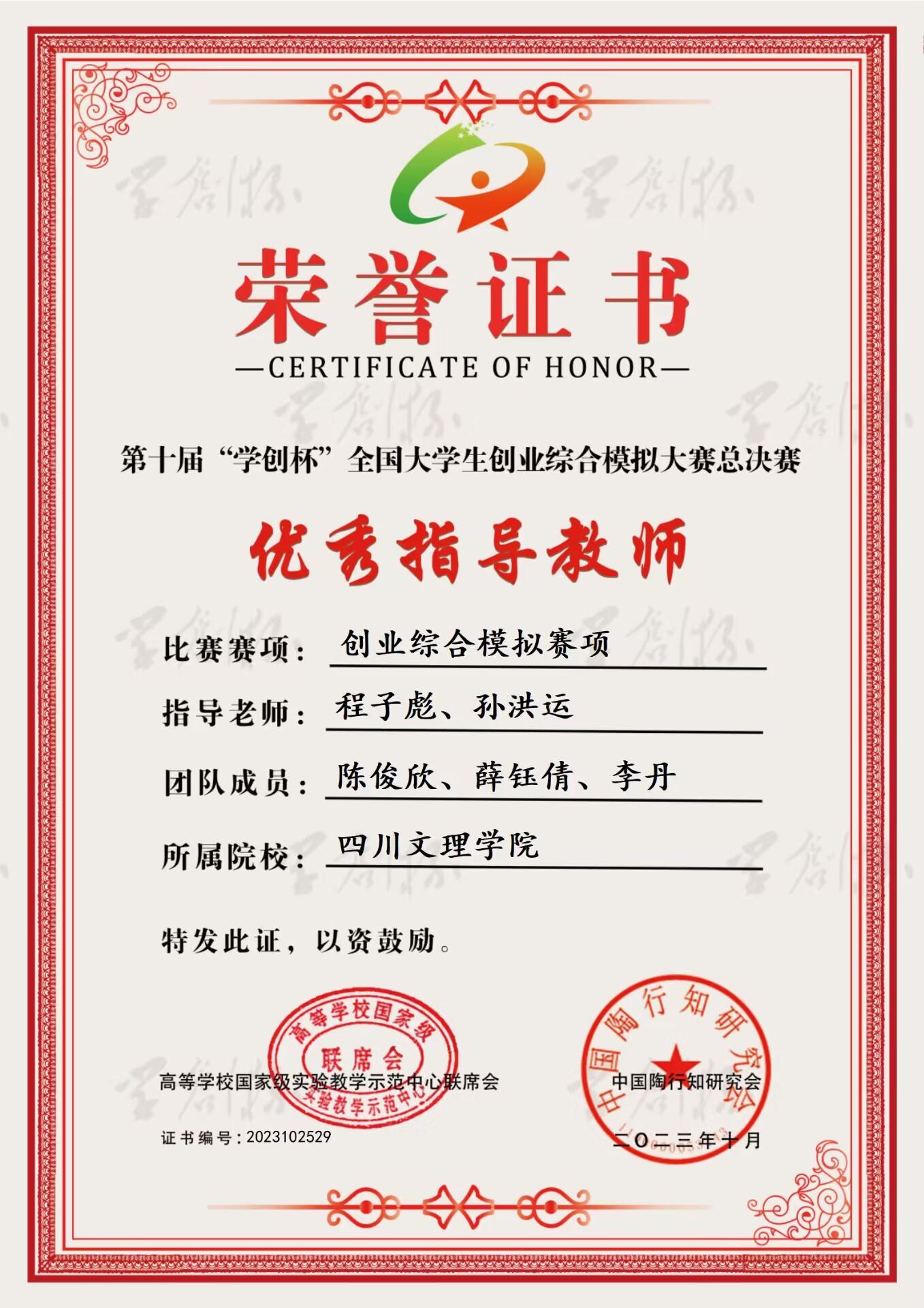 我校自今年4月启动“学创杯”赛事相关工作以来,william英国中文广泛动员、精心组织,开展了大赛宣讲、专题培训、专家辅导等一系列备赛工作,为参赛团队提供全方位的精准指导和资金支持。6月经过校内选拔赛,遴选出创业综合模拟赛项和创业营销赛项各3支队伍参加省赛。其中,财经管理学院陈俊欣、薛钰倩、李丹三位同学组建的“碱基互补队”,在与省内44所高校133支创业综合模拟赛项省赛代表队展开竞技,荣获创业综合模拟赛项(本科组)省赛一等奖后,10月又与全国25个省份218支国赛代表队展开激烈角逐,最终斩获创业综合模拟赛项全国二等奖,指导教师程子彪、孙洪运获得“优秀指导教师”荣誉称号。