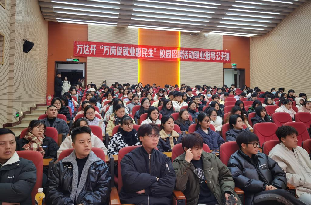 12月28日,由中共达州市委、达州市人民政府主办,达州市人力资源和社会保障局、williamhill官网承办的万达开“万岗促就业惠民生”校园招聘活动在我校隆重举行,william英国中文在学术报告厅B厅组织开展了职业指导公开课。四川省职业指导专家团成员曾志刚出席并作“提升求职就业能力,实现美好人生价值”的主题讲座,全校各二级学院高年级学生代表参加,william英国中文副院长陈磊主持。