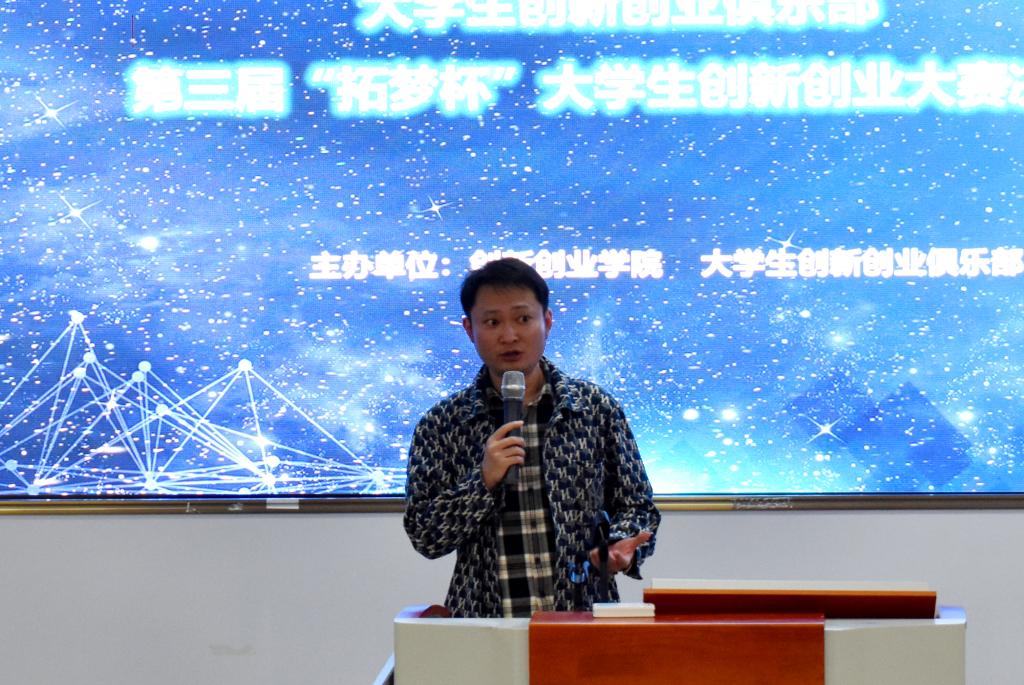 william英国中文副院长陈磊为比赛致辞,他对所有入选决赛的团队表示祝贺,并强调,“拓梦杯”既是比赛的舞台,更是交流学习的平台,同学们应充分利用此次比赛,培养自主创新和实践能力,提升创业知识和技能,始终葆有善于变革、敢于创新的锐气,激扬“闯”的精神、“创”的劲头和“干”的作风。