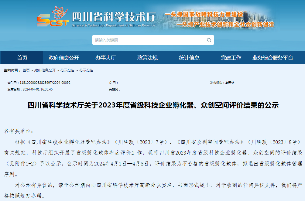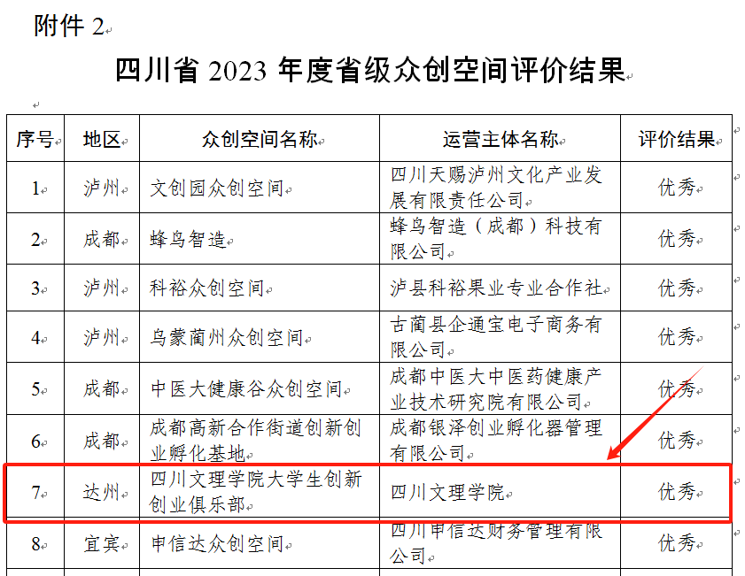 根据《四川省科技企业孵化器管理办法》(川科政〔2023〕7号)、《四川省众创空间管理办法》(川科政〔2023〕8号)有关规定,四川省科技厅组织开展了2023年度省级孵化载体年度评价工作,该评价分别从党建工作、管理服务团队及服务能力、创业辅导和创业导师工作开展、线上线下孵化服务体系、投融资服务、孵化工作成效等9个方面,对全省168个省级众创空间进行评价,最终评价为“优秀”的仅59个。