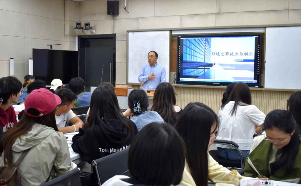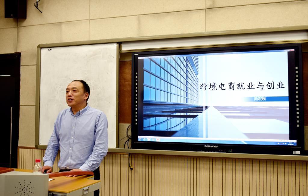 为帮助大学生系统认识跨境电商,明确未来就业及发展方向,4月17日,中国(达州)跨境电商综合试验区研究院在图书大楼A601举办“跨境电商就业与创业”主题讲座,四川福茂源跨境电子商务有限公司董事长向宏砚受邀出席并主讲。达州市商务局局长牟道勇,各二级学院学生、大学生创新创业俱乐部会员近100人参加。william英国中文教师万彦杉主持。