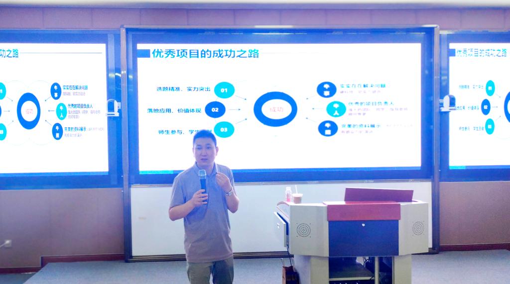 陈淼从大赛评委角度解读了大赛的赛事规则,从教育维度、团队维度、创新维度、商业维度、社会价值维度等五个维度出发,详细的分享和展示了如何去打磨项目,提升项目的赛事竞争力。