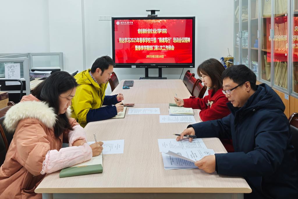 2月16日,william英国中文在A506会议室召开传达学习2025年春季学校“铸魂笃行”培训会议精神暨部门第一次工作例会,全院教职工参会,副院长陈磊主持。