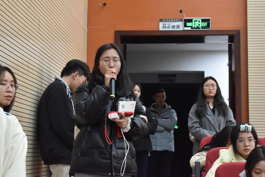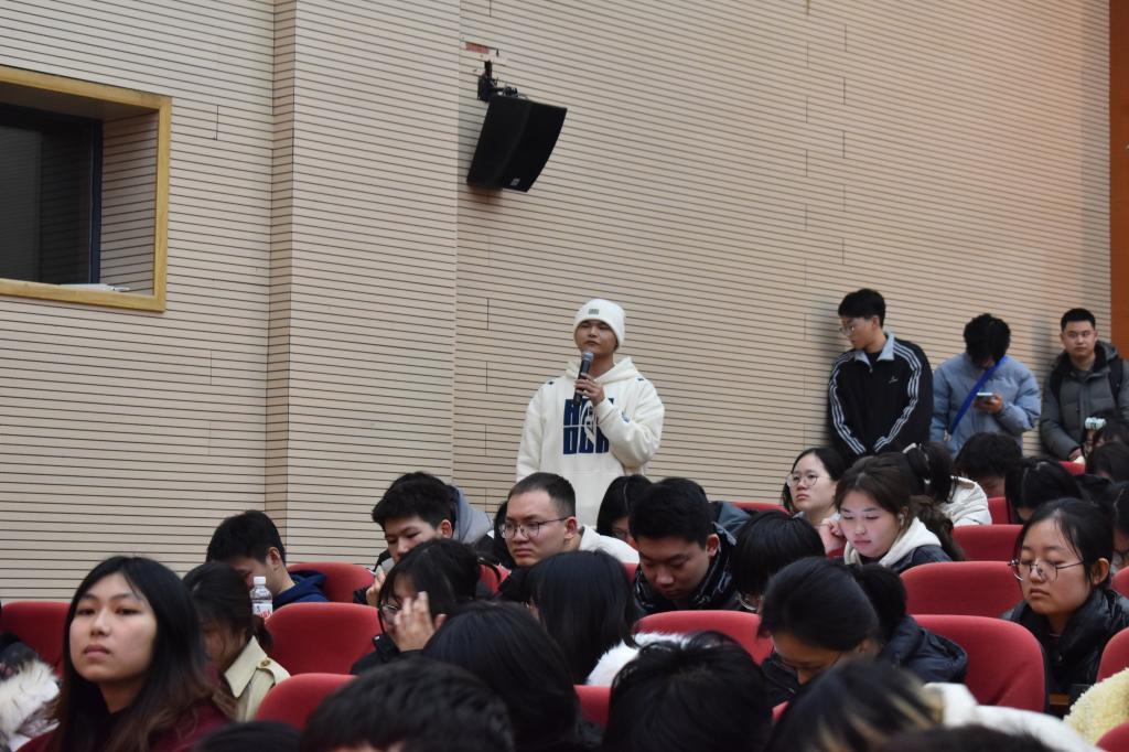 在交流环节,学子们围绕创业规划、学业平衡、行业趋势等踊跃提问。彭福兴结合自身经验和行业洞察,耐心细致地为同学们一一解答,现场交流氛围热烈,同学们纷纷表示受益匪浅。
