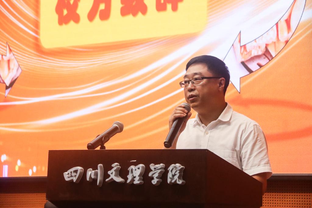 陈磊代表学院致辞。他首先感谢黄老五公司对本次活动的大力支持,并强调本次大赛也是产教融合、校企合作的一次重要实践和尝试,今后将为同学们搭建更多从创意孵化到实践落地到市场转化的平台,让同学们的奇思妙想从“校园赛场”走向“商业战场”,真正实现教育链、人才链与产业链、创新链的有机衔接。