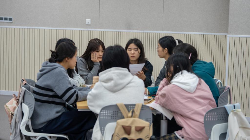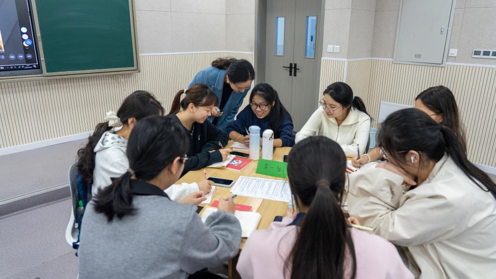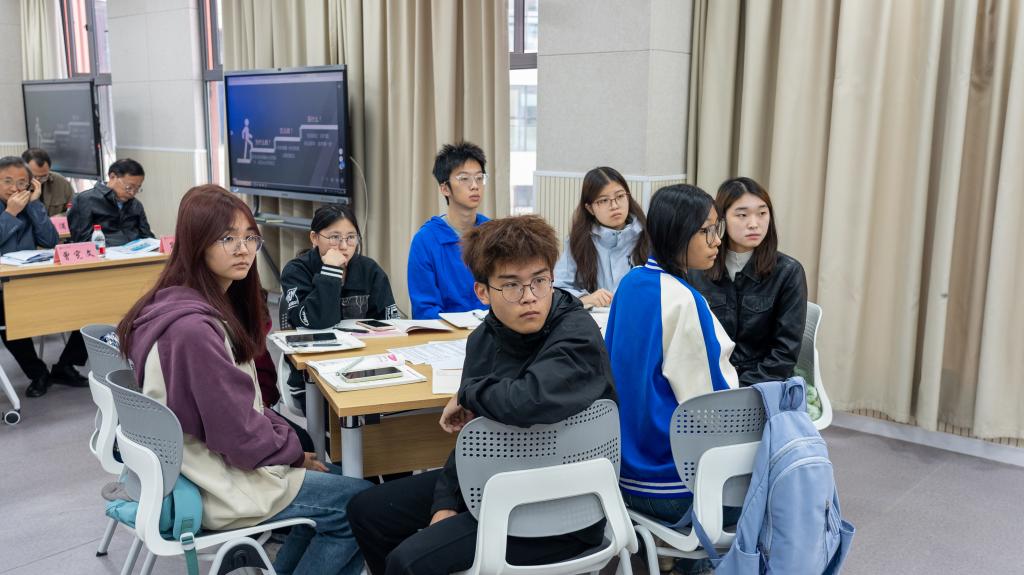 公开课结束后,徐佩分享了课程设计思路。她表示,该课程的建设始终着围绕侯忠明校长提出的“教师四问”展开,聚焦学生分析、评价、创造等高阶能力培养,通过集体备课、试讲打磨、反馈优化的闭环流程持续完善。