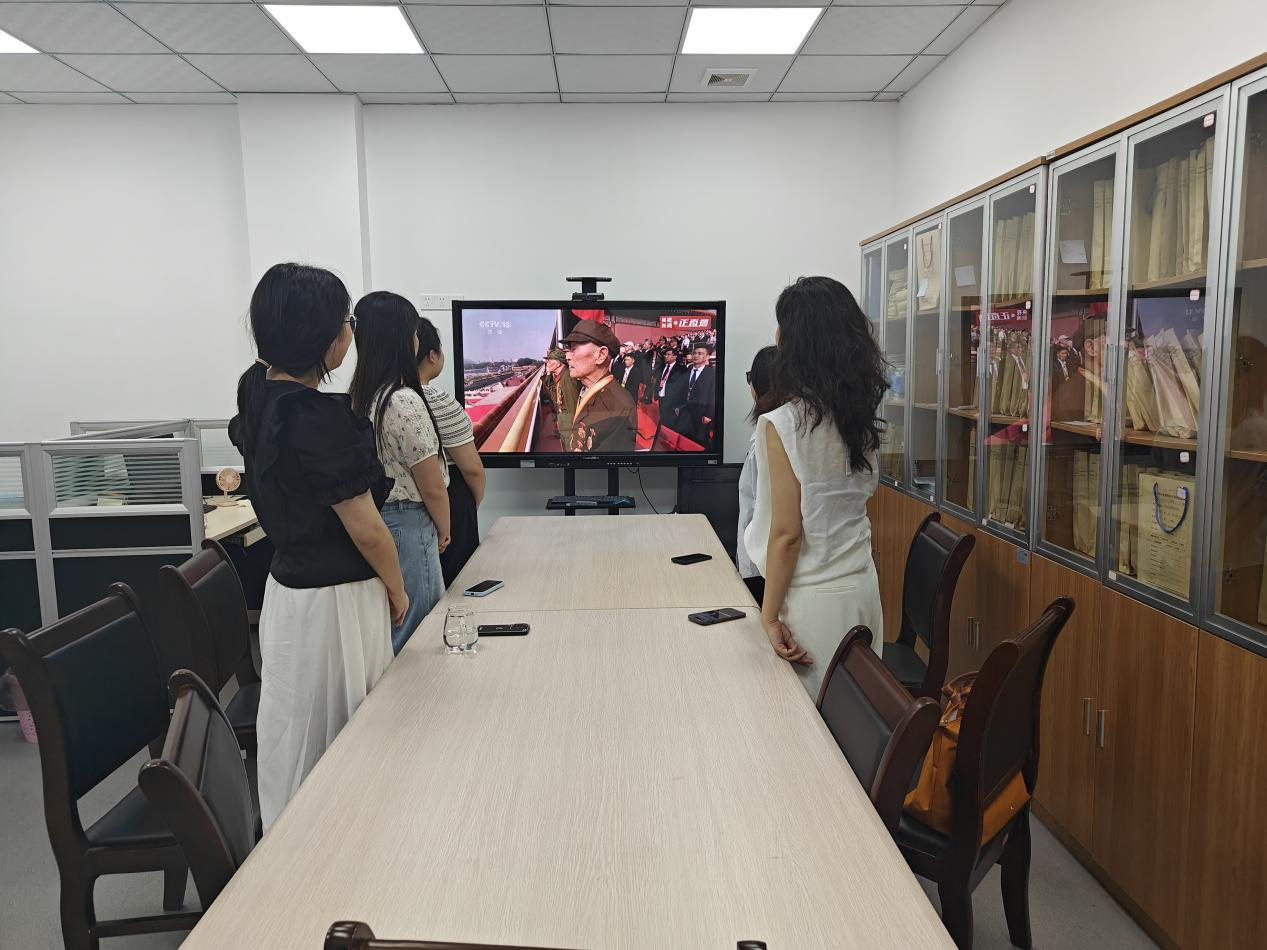 9月3日上午,学院组织全体在校教师在学院会议室集中观看了纪念中国人民抗日战争暨世界反法西斯战争胜利80周年阅兵活动。