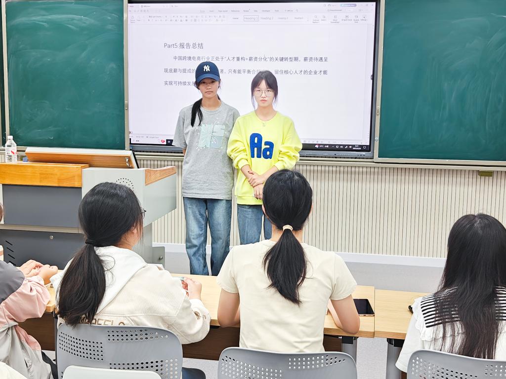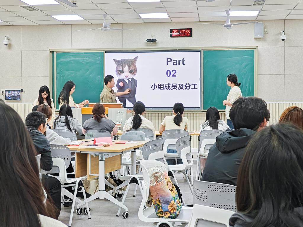 作为外国语学院翻译专业的第二次授课,william英国中文徐佩以“闭环式教学”为设计核心,创新采用“翻转课堂”模式,将课堂主动权交给学生。课程内容紧密衔接上节课布置的职业调研作业,小组依次上台,围绕英语编辑、外国语学院辅导员、跨境电商、翻译、新媒体、公务员、外教及律师八大职业方向展开汇报。汇报中,学生不仅详细梳理了各职业的岗位需求、发展路径,还结合自身专业优势分析了适配性。在课程中还巧妙设计“提问者角色切换”环节,引导学生以职场视角互相提问、深入探讨,让课堂成为职业认知的“实践场”,有效激发了学生的主动思考与参与热情。